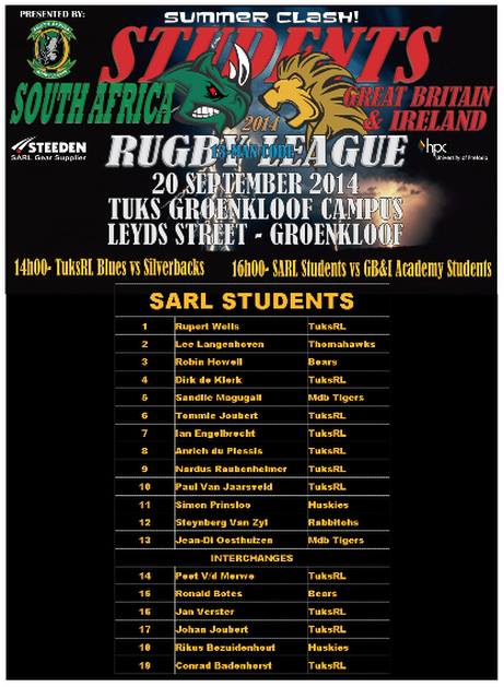 Students 2014 Student Squad GAME 20 Sept 2014: SA vs GBI Academic Students RESULT LOST 58 – 8 Match Report Click to READ Game Highlights View on YOUTUBE Our Sponsors
